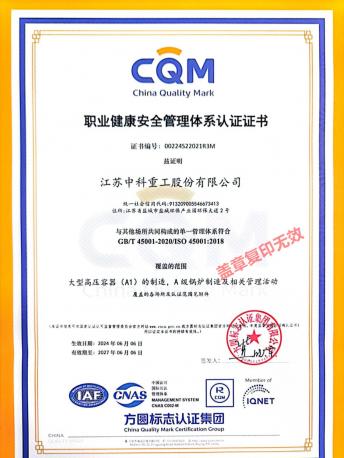 • 職業(yè)健康安全管理體系認(rèn)證證書